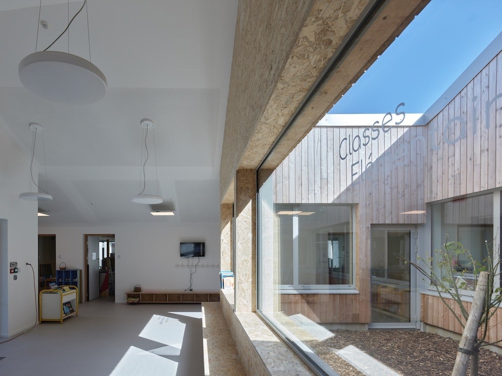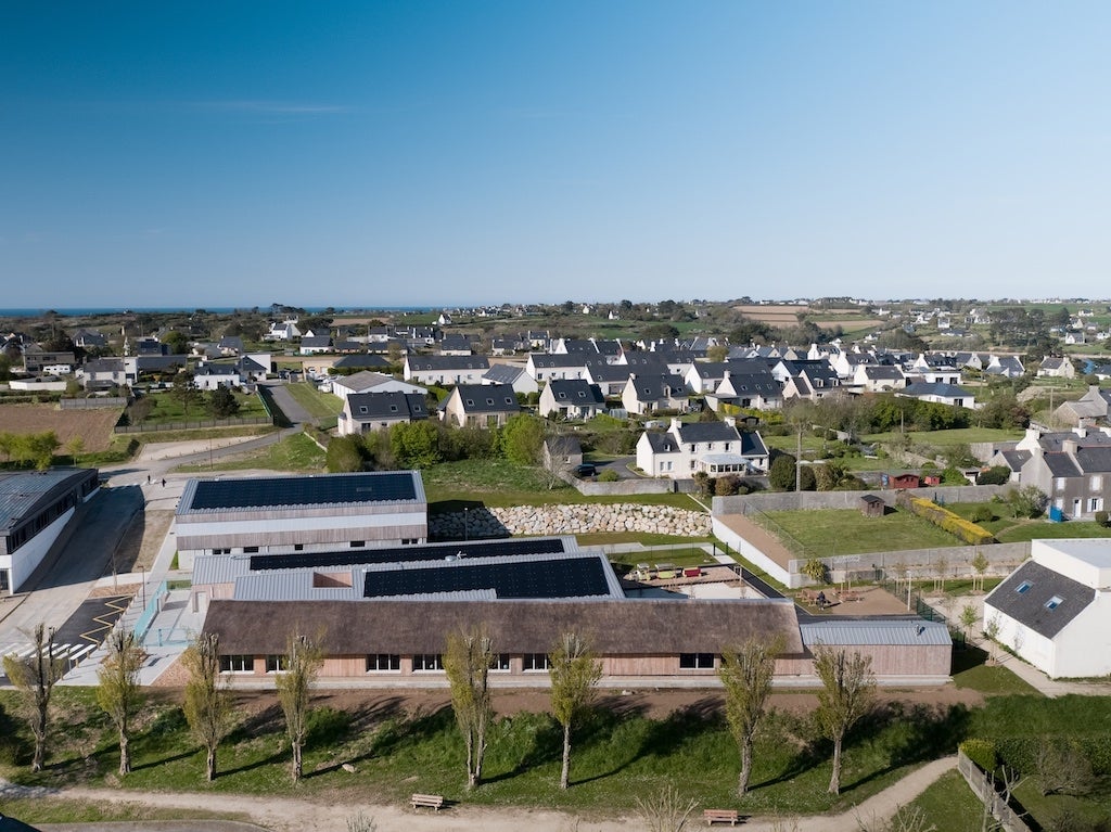 In Saint-Pabu, Finistère, architects Anne Flore Guinée and Hervé Potin designed a school complex inspired by regional architectural traditions. Nestled in the Aber Benoît, this group of buildings resembles a small, compact, and reassuring hamlet. It consists of three longhouses housing a primary school and an activity room, addressing both local and environmental issues.