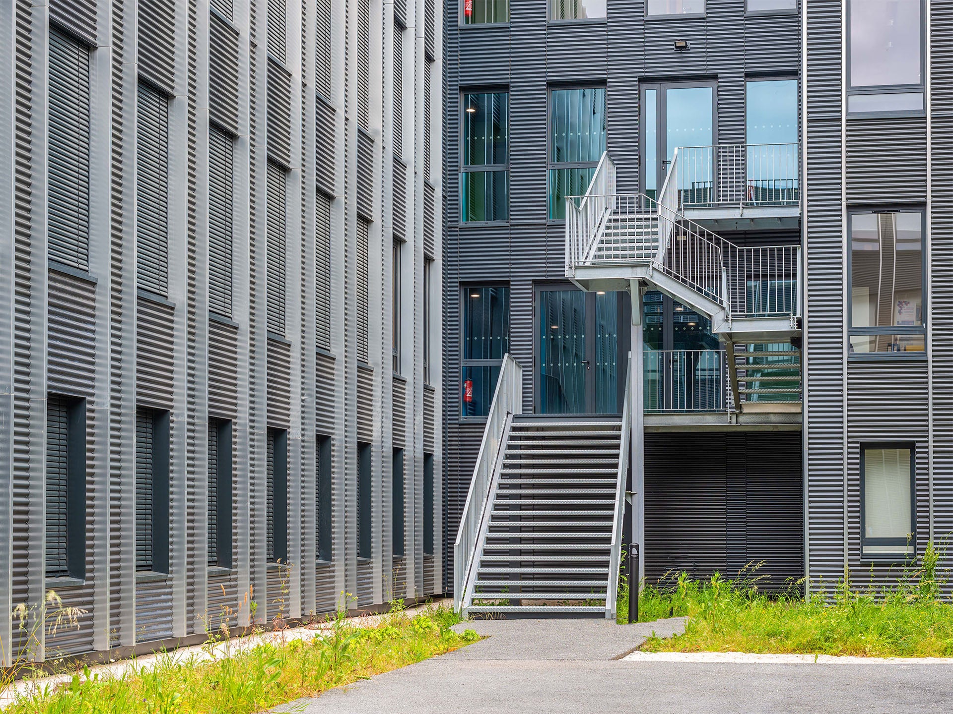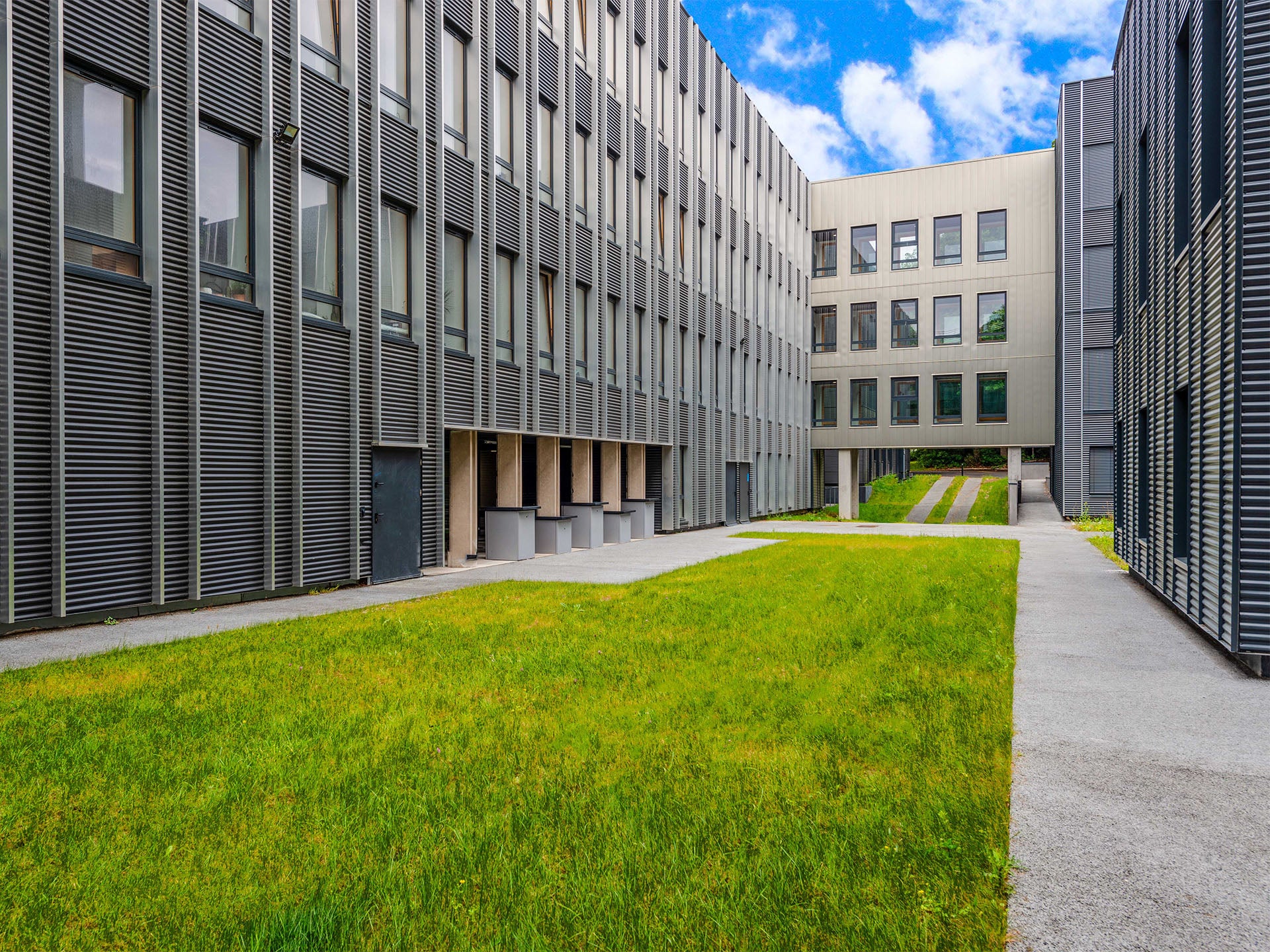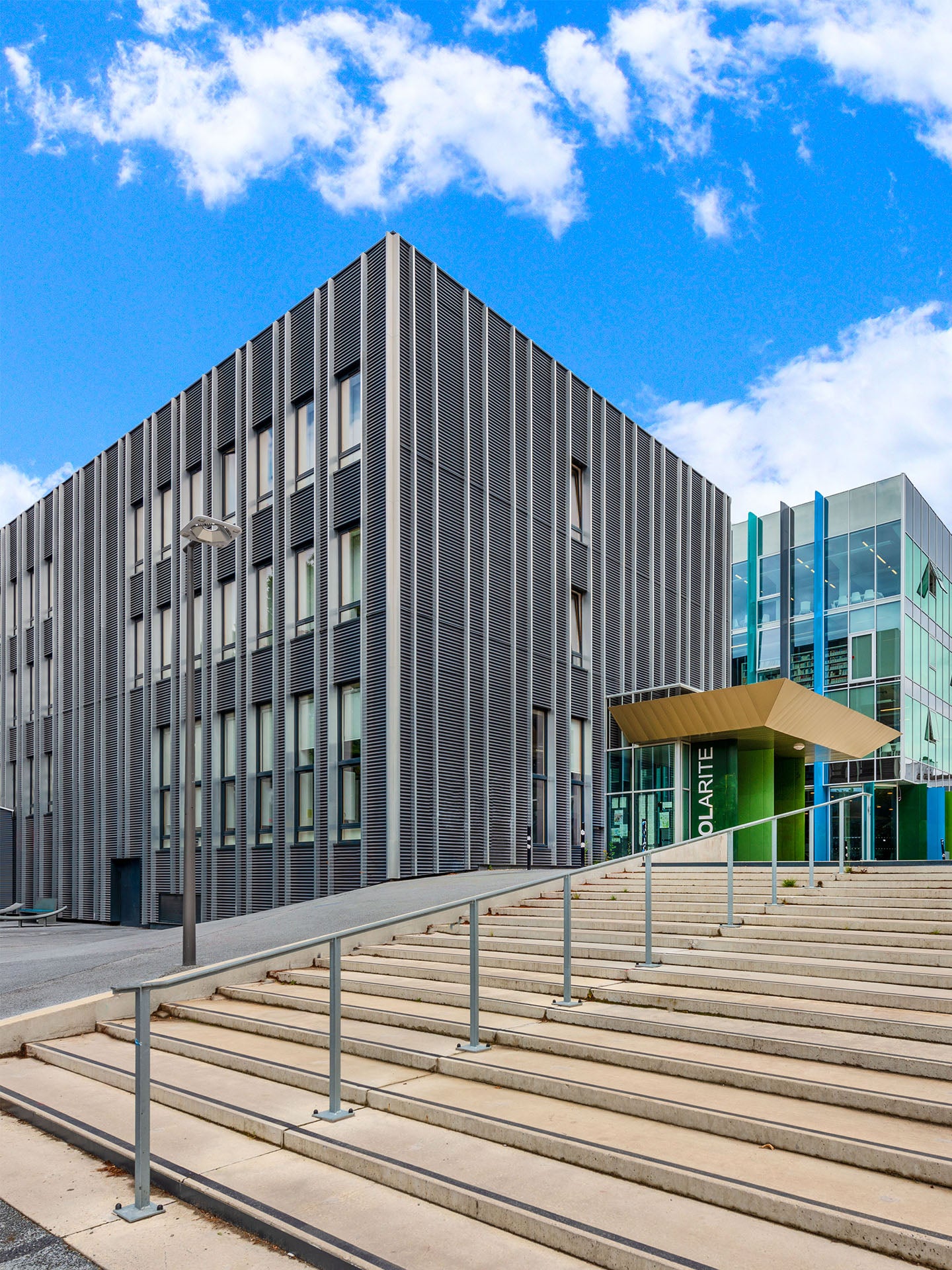 The ‘Nouveau Tertre’ Campus has achieved the "Bâtiment Basse Consommation Renovation" (BBC 2005) level, i.e. a consumption level 40% lower than the reference consumption (French standard). The technical choices were based on the performance of the metal envelope and the use of solar products. For the new building, the project complies with the latest French standard.
